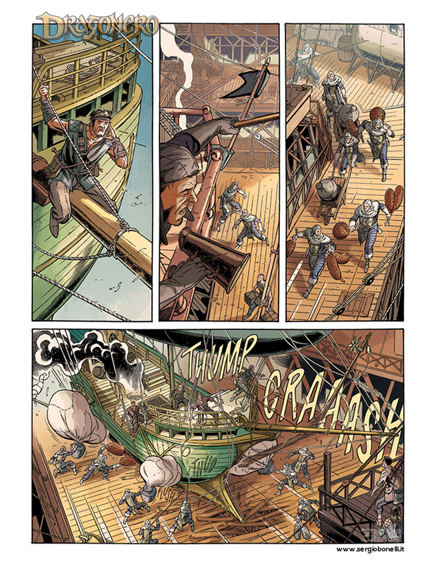 ![]() Disegno di Riccardo Crosa, colori di Paolo Francescutto (cliccate sull'immagine per visualizzare la tavola intera). |