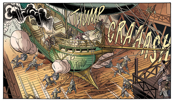 ![]() Disegno di Alessandro Bignamini, colori di Piki Hamilton (cliccate sull'immagine per visualizzare la tavola intera). |