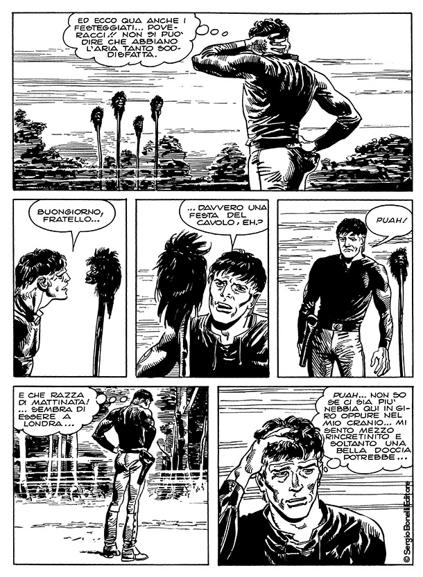 ![]() L'incontro tra il detective Uriarte e il nostro Jerry Drake visualizzato da Franco Bignotti (cliccate sull'immagine per vedere la tavola intera) |