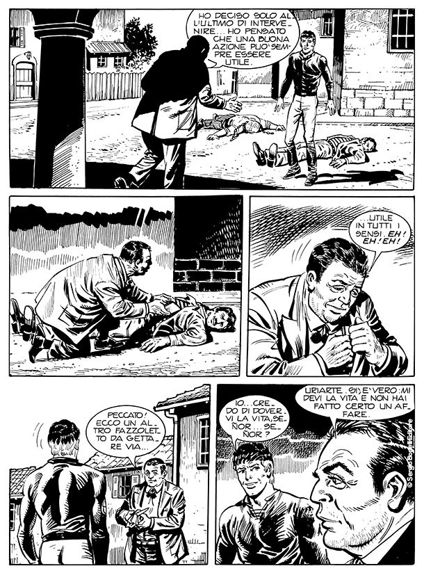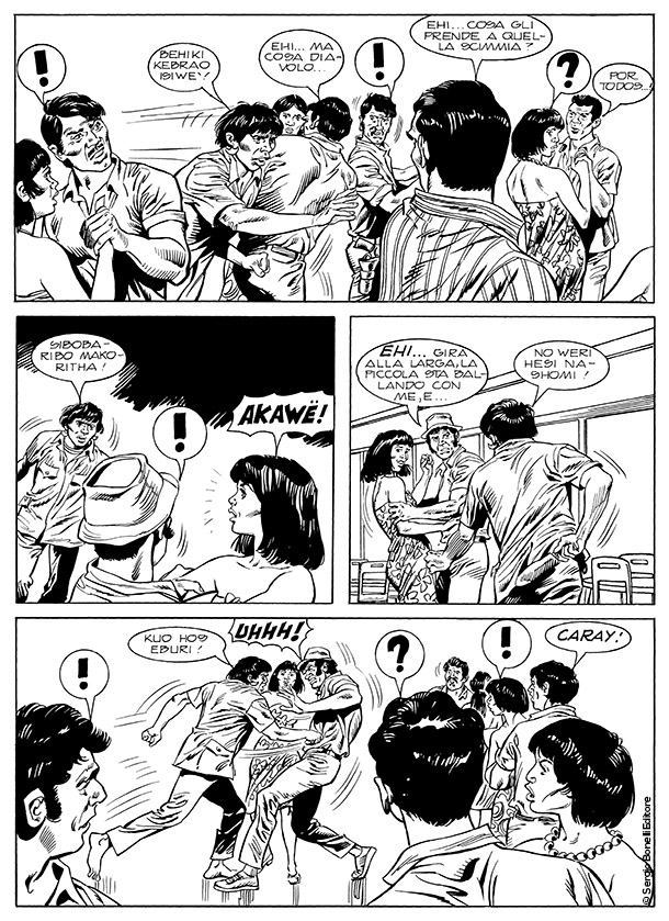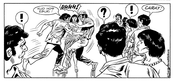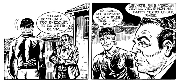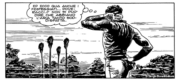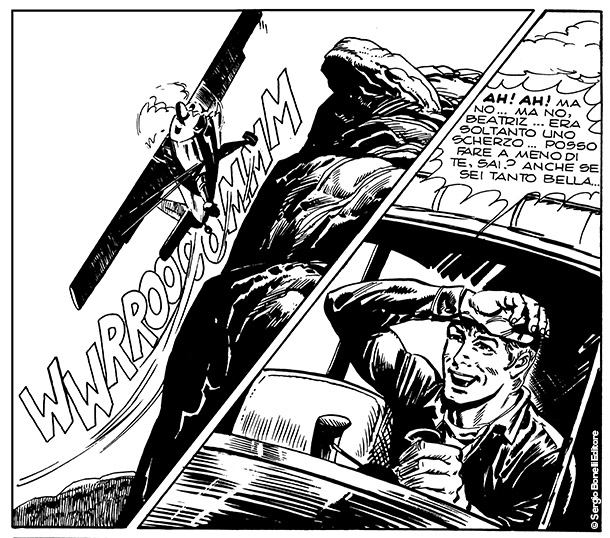 ![]() Il piper di Mister No punta dritto su Leticia, disegno di Vincenzo Monti e Luigi Merati. |