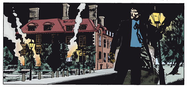 ![]() Una vignetta da "L'alba dei morti viventi" Dylan Dog 1, testi di Tiziano Sclavi, disegni di Angelo Stano, colori di GFB Comics |
