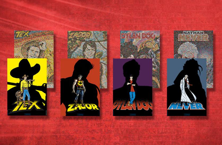 Come gli altri, anche questi mostrano su da un lato il personaggio protagonista, e dall'altro un mosaico composto da tutte le copertine della sua serie regolare, che vanno a comporre una nuova immagine. Le illustrazioni utilizzate sono, nell'ordine, di Claudio Villa, Gallieno Ferri, Angelo Stano e Roberto De Angelis.