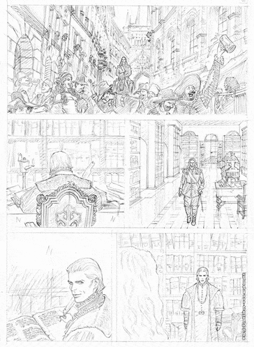 A inizio pagina potete trovare alcune tavole a matita disegnate da Majo, uno dei suoi studi per il personaggio di Fortunata e le diverse fasi di colorazione realizzate da Matteo Vattani per un paio di tavole. Una delle quali potete vedere anche qui sotto in un'efficace gif animata. Buona visione!