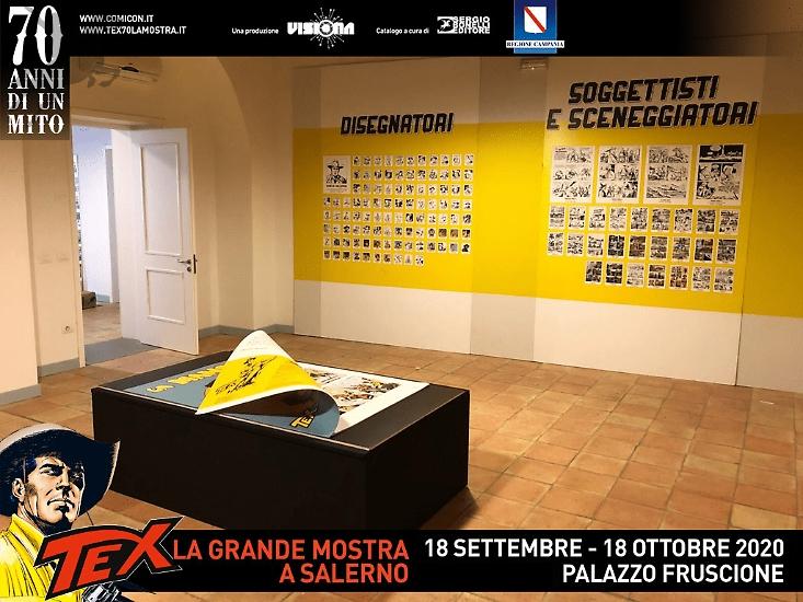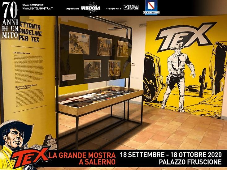 Dopo quella inaugurale di Milano e quelle di Roma e Siena, la grande mostra Tex 70 anni di un mito sta facendo tappa presso Palazzo Fruscione a Salerno. L'esposizione è curata da Gianni Bono, storico e studioso del fumetto italiano, in collaborazione con la redazione di Sergio Bonelli Editore e COMICON.