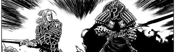 ![]() Emanuele Gizzi all'opera, in una vignetta tratta da Dragonero n.38 (cliccate sull'immagine per vedere la pagina intera). |