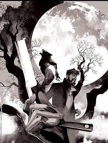 Grazie al materiale di lavorazione inviatoci dal sempre disponibile Gigi Cavenago, copertinista ufficiale della collana di Dylan Dog, anche questo mese vi possiamo mostrare le fasi di ideazione e lavorazione dell'illustrazione che racchiude il numero 403 della serie regolare, intitolato "La lama, La Luna e l'Orco", in edicola dal 31 marzo.