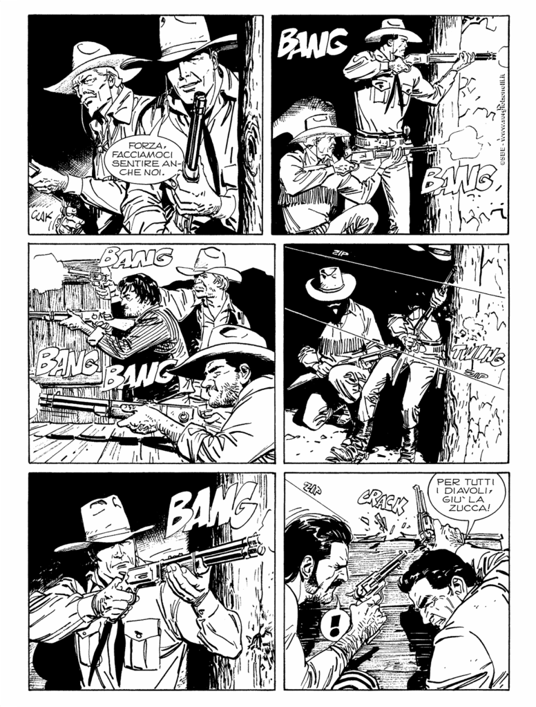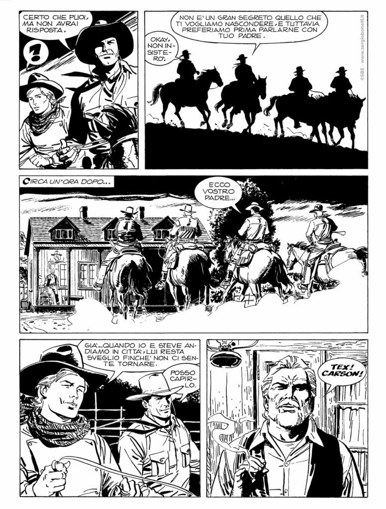 Continua lo shoppingLa lotta tra i Macomber e i gestori della miniera si inasprisce. Niente è tralasciato dagli avidi speculatori pur di mettere le mani sul ranch di Harry Macomber. Tradimenti, inganni, rapimenti... persino la rivalità tra i due figli del vecchio amico di Tex viene abilmente sfruttata. Ma, alla fine, i nostri Tex e Carson avranno la meglio sui molti nemici e, all'insegna della migliore tradizione, l'amore tra Steve Macomber e l'avvenente Katleen, una delle attrattive del locale saloon, trionferà...