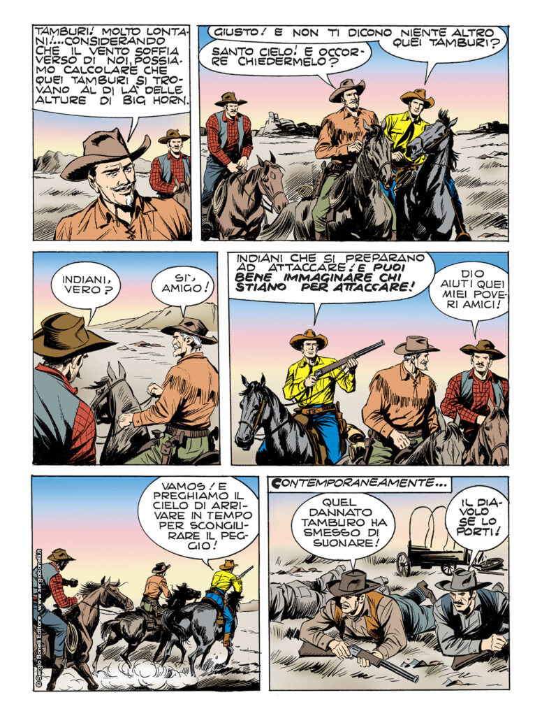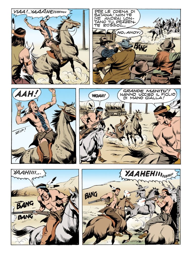 Continua lo shoppingGli operai della Overland Telegraph Company uccidono il figlio di Mano Gialla, sakem cheyenne il quale, alleato con i Seminoles di Grosso Serpente, chiede vendetta! Le due tribù sono pronte a dirigersi verso Fort Reno per ottenerla e solo l’astuzia di Tex può rallentare la loro furiosa corsa…
