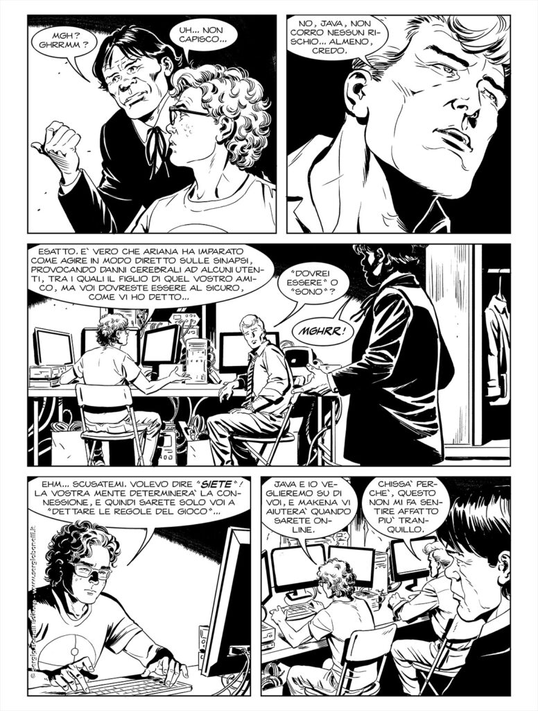 Continua lo shoppingL'indagine di Martin Mystère conduce lui e Java ad addentrarsi ancora più in profondità negli oscuri segreti che si nascondono nei server di una misteriosa società informatica che sembra aver scoperto il metodo per mettere in comunicazione telepatica l'uomo e la macchina. Per il Detective dell'Impossibile strappare il velo che divide il mondo reale da quello virtuale potrebbe, però, avere un elevato prezzo da pagare…