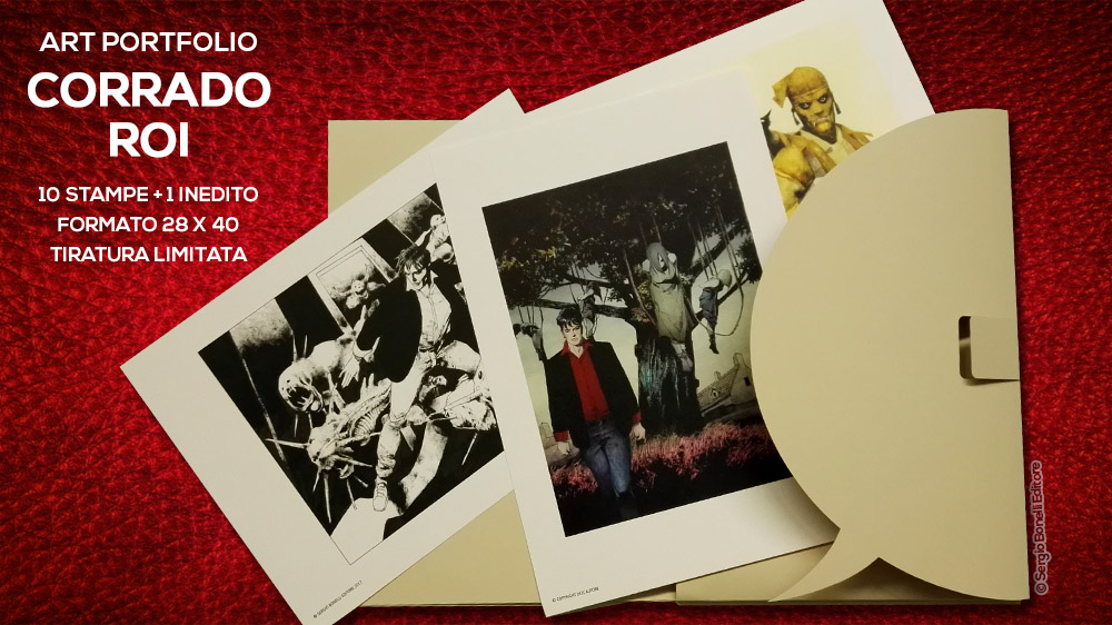 Continua lo shoppingL'Art Portfolio dedicato a Corrado Roi propone quattro illustrazioni dedicate a Dylan Dog (di cui tre a colori) e sette con UT, di cui tre a colori e quattro in bianco e nero.