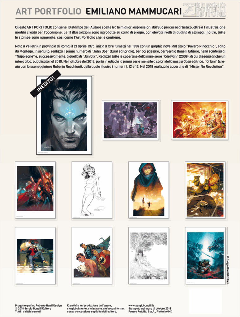 Continua lo shoppingL'Art Porfolio di Emiliano Mammucari contiene dieci immagini - alcune delle quali a colori - selezionate personalmente dall'autore tra le migliori espressioni del suo percorso artistico, oltre a un'illustrazione inedita a colori creata per l'occasione.