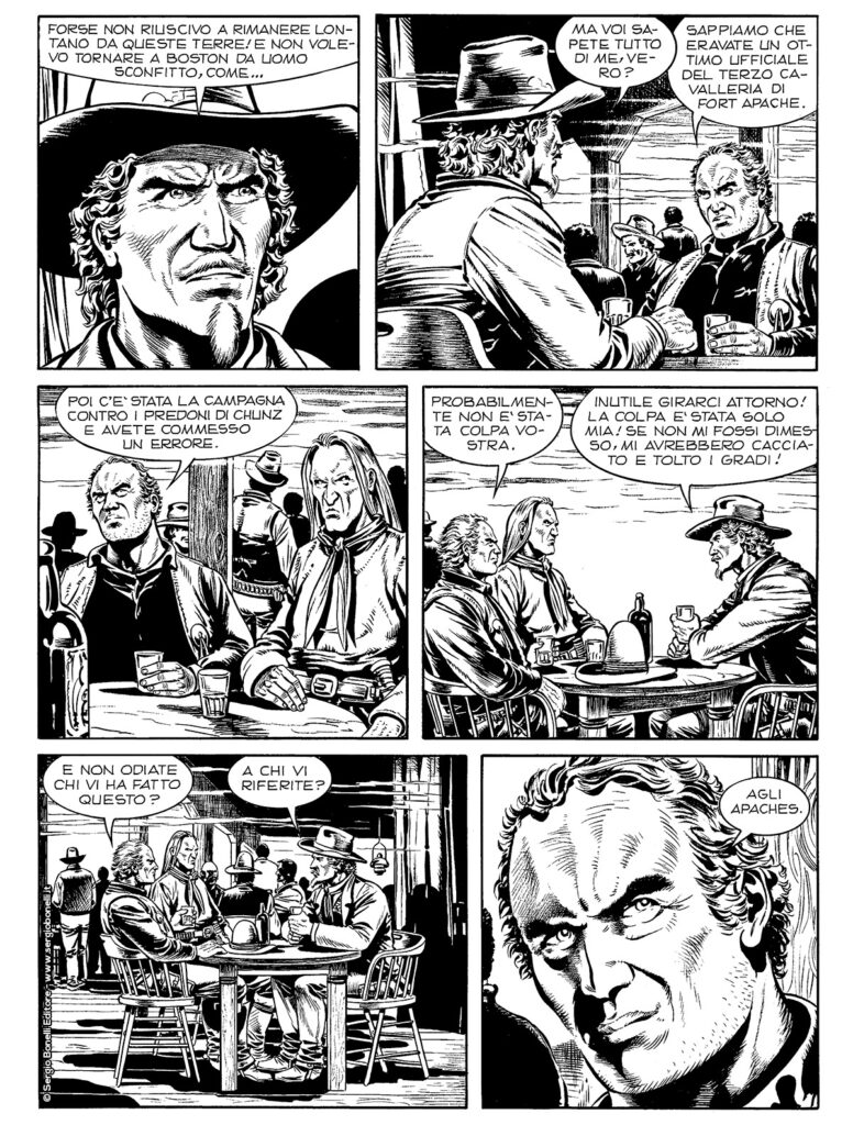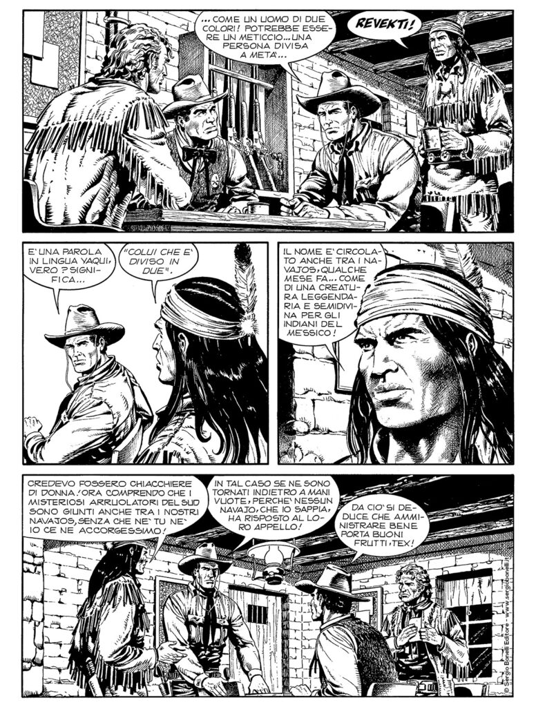 Continua lo shoppingIl Sudovest è di nuovo in fiamme! Misteriosi incursori indiani, appartenenti a diverse tribù, giungono nottetempo da Sud del confine con il Messico per attaccare e depredare fattorie e villaggi isolati. Dopo aver fatto drammaticamente il loro incontro, Tex e Tiger s'imbattono, a Tucson, in Johnny Laredo, capo degli scout di Fort Apache, deciso a scoprire la verità sui misteriosi predoni. Il fratello di uno dei suoi scout è riuscito a infiltrarsi nelle loro schiere e a scoprire che il loro rifugio è sulla Sierra Madera e che il loro leader è un sinistro profeta che si fa chiamare Revekti, il "diviso". Sulla pista dei predoni, intanto, oltre ai nostri eroi, parte verso il Messico un secondo gruppo armato, composto dai tagliagole arruolati da un potente ranchero, il colonnello Cunningham, e di cui fa parte una vecchia conoscenza di Tex e Laredo, l'ex-tenente Parkman...
