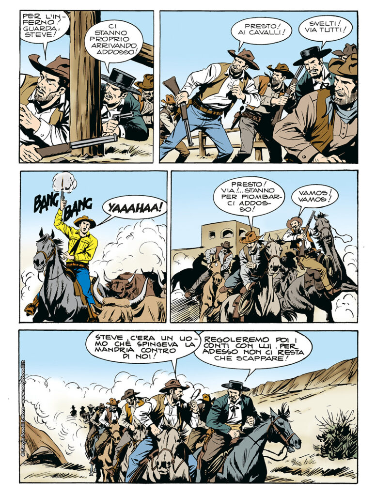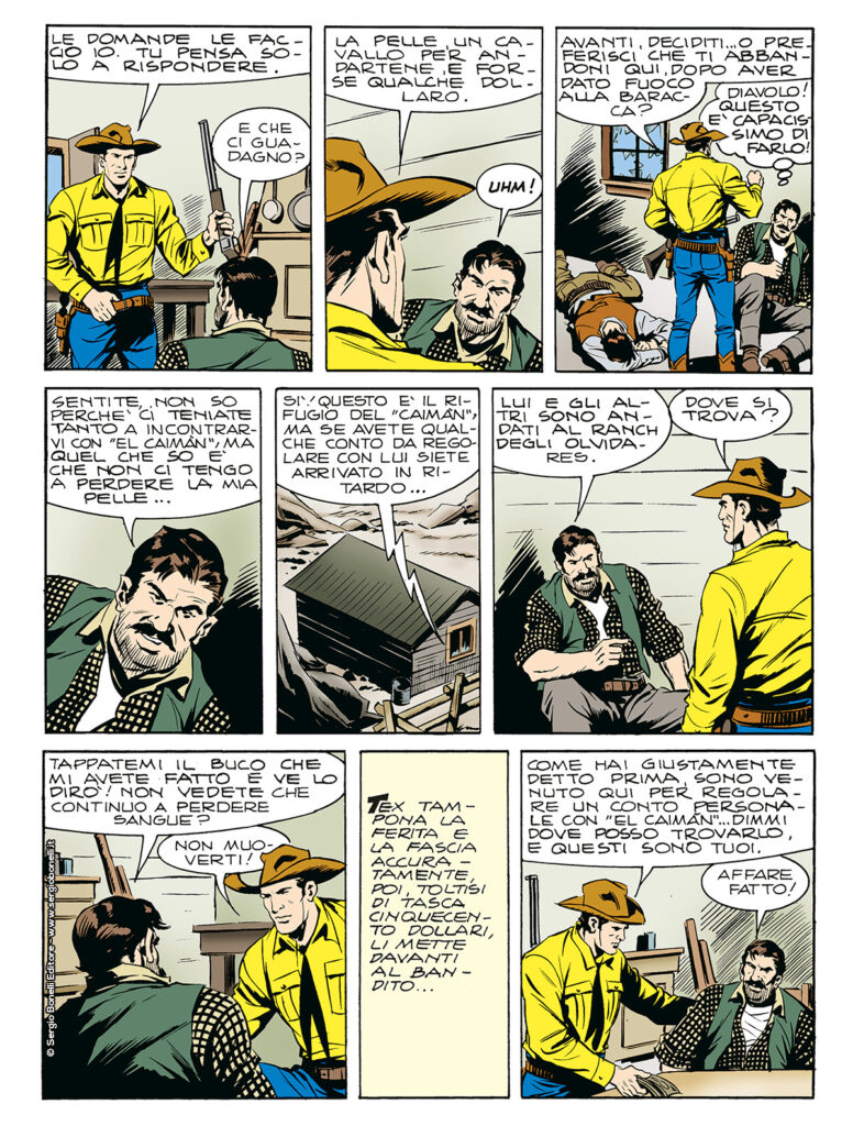 Continua lo shoppingLa banda di El Caimán è pronta a portare scompiglio nei pascoli a sud dell’Arizona e a farne le spese potrebbero essere gli Olvidares, solo il rapido intervento di Tex evita il disastro. Ma la combriccola è troppo numerosa, così il Ranger decide di allearsi con El Cisco…