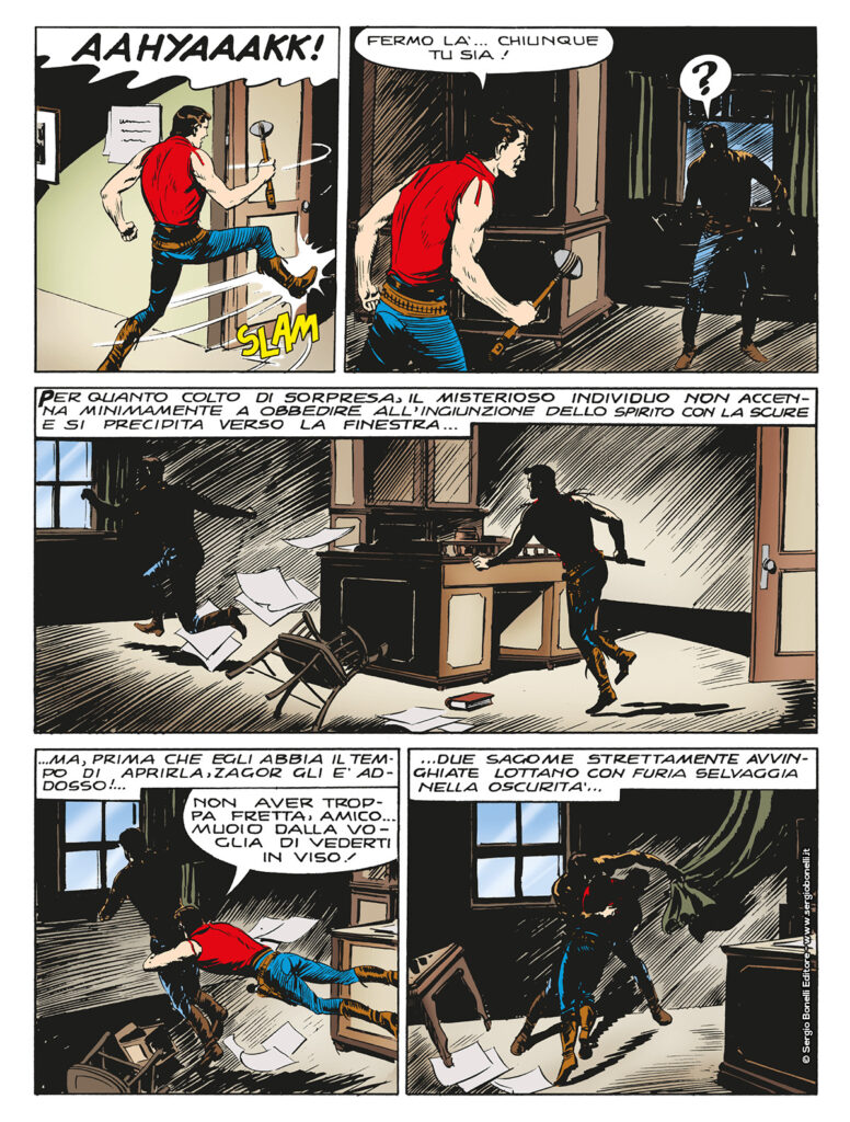 Continua lo shoppingSfuggito a temibili Nanticokes, e recuperato il sorprendente tesoro di Capitan Kidd, Zagor, Cico e “Digging” Bill devono rientrare al più presto a Forte King perché il processo a Teddy Nicols è ormai giunto al termine... Mentre i due amici si trovano ancora al Forte, un misterioso ladro si introduce nell’ufficio del Colonnello per rubare “Amelia”, una nuova e potentissima bomba creata dallo scienziato Adolfo Verybad. Lo Spirito con la Scure, quindi, organizza una difficile “caccia al ladro”!