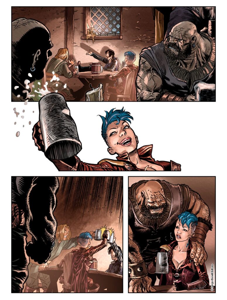 Di particolare interesse è l’avventura disegnata da quest’ultimo: intitolata “Tre tipi tosti”, scritta da Luca Enoch e colorata da Paolo Francescutto, è incentrata sulle disavventure di tre simpatici e spregiudicati ladri. Eccezionalmente priva della presenza dell’eroe Ian Aranill, era stata inserita come contenuto extra e inedito nel volume “Minaccia all’Impero”. A distanza di oltre un anno, e visto il suo legame con la saga delle Regine Nere appena conclusa, abbiamo pensato di ripubblicare questo gioiellino all’interno del Magazine per offrirlo anche ai lettori che non abbiano acquistato il cartonato deluxe.