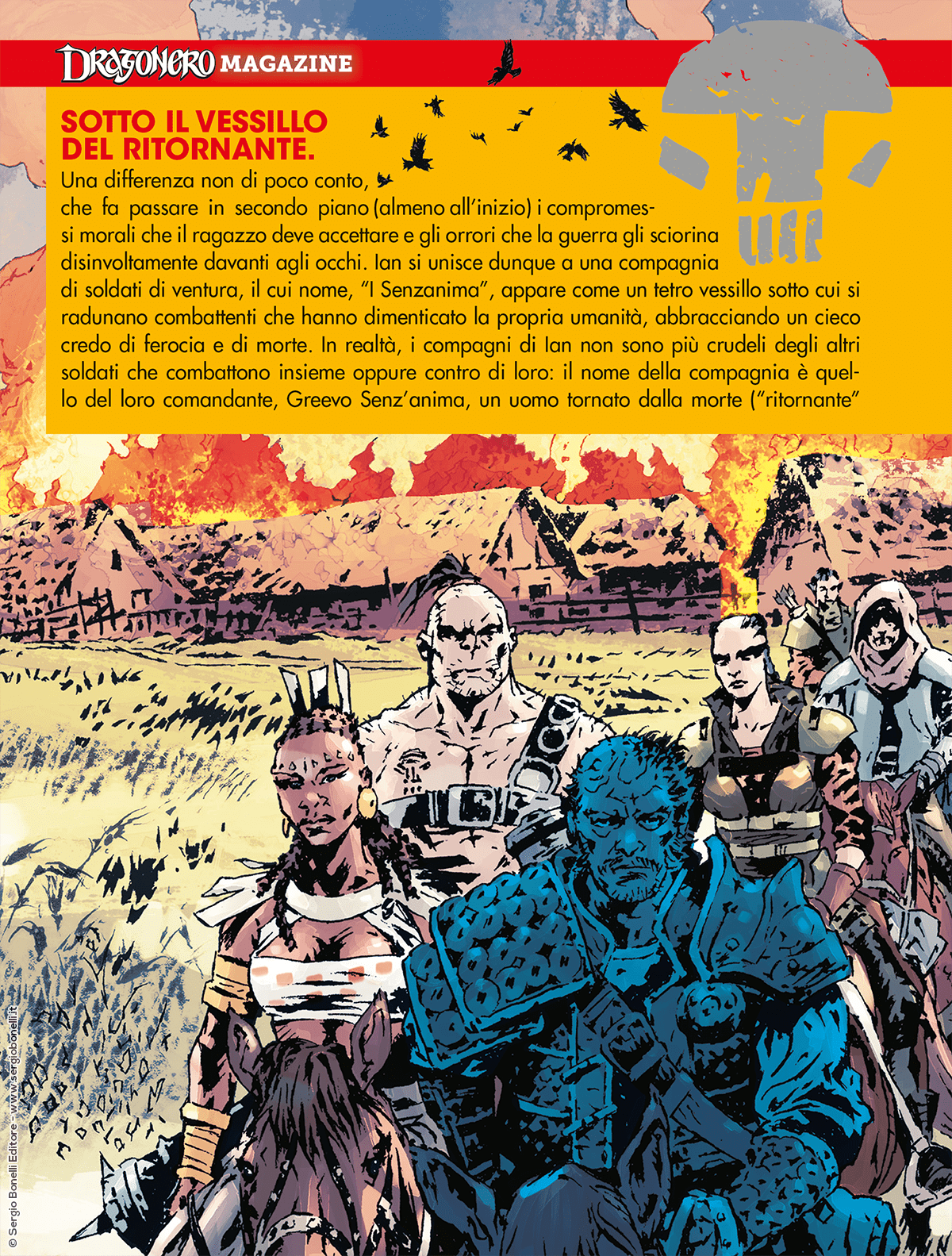 A corredo di quest’imperdibile avventura, Maurizio Colombo ha preparato per i lettori una sorpresa sotto forma di lungo articolo, che si accompagna ad altri due sulla fantastica epopea di Re Artù e, cogliendo al balzo l’occasione fornita dal nuovo volume di Senzanima (spin-off da libreria delle avventure del giovane Ian), sulla storia delle compagnie di ventura e dei soldati mercenari, raccontata attraverso episodi storici, film, libri e fumetti. Infine, un dossier sulle grandi battaglie del fantasy…
