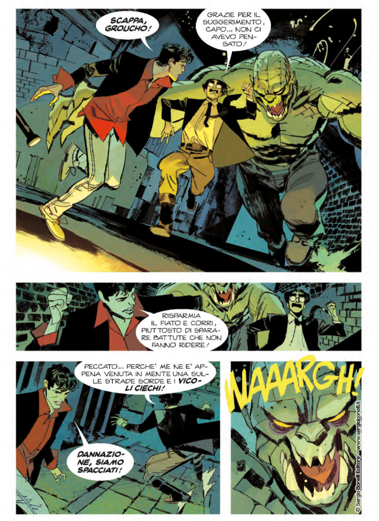 Dylan Dog e Batman, Groucho e Alfred Pennyworth, l'ispettore Bloch e il commissario Gordon, con la partecipazione di Madame Trelkovski e Catwoman, di John Constantine e del demone Etrigan: uomini e superuomini uniti per affrontare una squadra di letali villains.