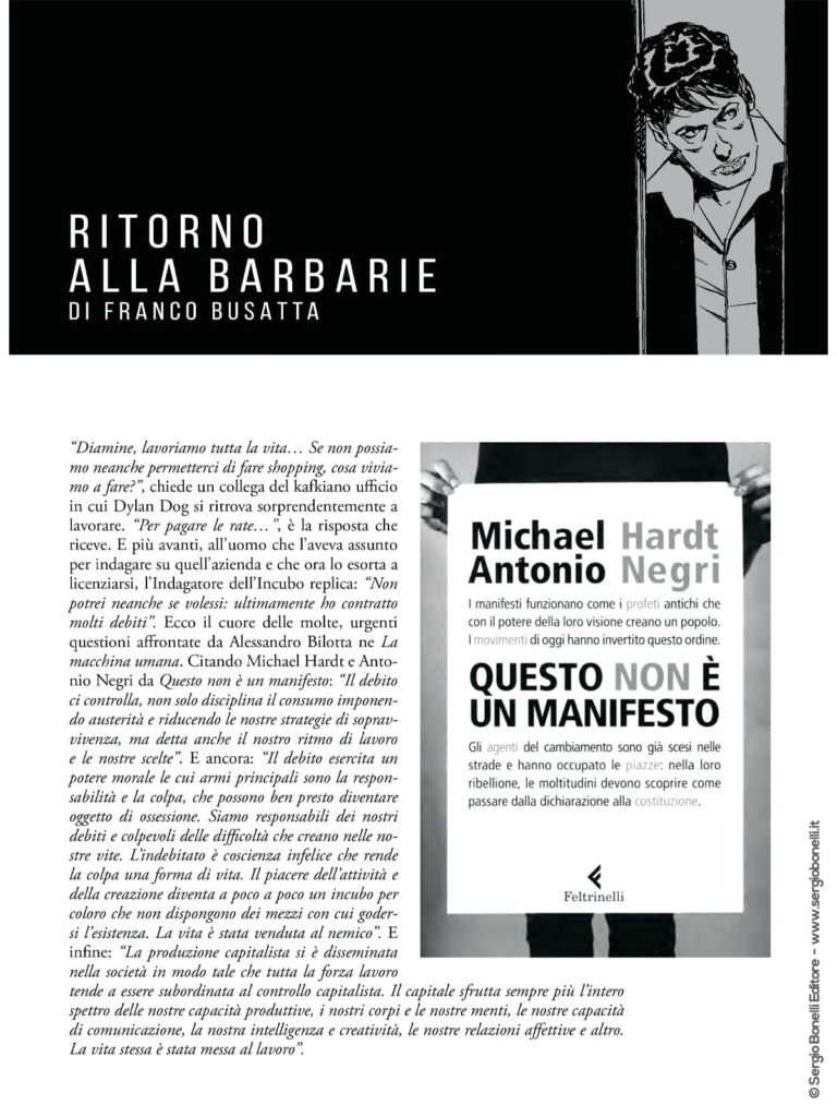 Continua lo shoppingNuovi incubi per Dylan Dog, in una storia in cui a farla da padrone è l'orrore della pura e semplice realtà: una quotidianità scandita dalle lancette dell'orario di lavoro in una multinazionale dalle mire oscure. Perché Dylan si trova lì? Come ci è finito?