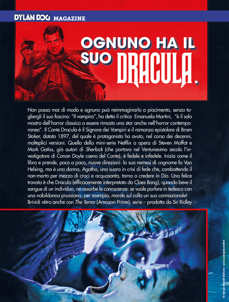 Continua lo shoppingNell’edizione 2020 del Dylan Dog Magazine, il conte Dracula non passa mai di moda, così come i cacciatori di mostri (meglio se giganteschi, i mostri) e se un uomo invisibile dorme nel vostro letto, chi dovete chiamare? I Warren, naturalmente. Inoltre, la consueta rassegna sull’orrorifica annata di film, serial, libri, fumetti e videogiochi senza dimenticare le due storie inedite del nostro Investigatore dell’Incubo.