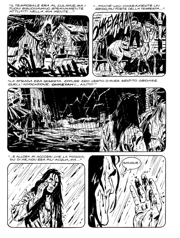 Per la gente di Carved Rock, l'uomo il cui volto è scolpito nella montagna è l'inviato della Provvidenza; per gli Ute, secondo una vecchia profezia, il suo arrivo significa sventura e lutto. Ma Derek Dish è soprattutto un pazzo sanguinario, fuggito dal manicomio di Bedlam, in cerca di vendetta per la sua vita segnata. La pace tra i coloni e il popolo del Grande Spirito sta per essere infranta, e Magico Vento deve affrettarsi per raccogliere l'invocazione dei tre messaggeri che appaiono nelle sue visioni cavalcando sotto una pioggia di sangue.