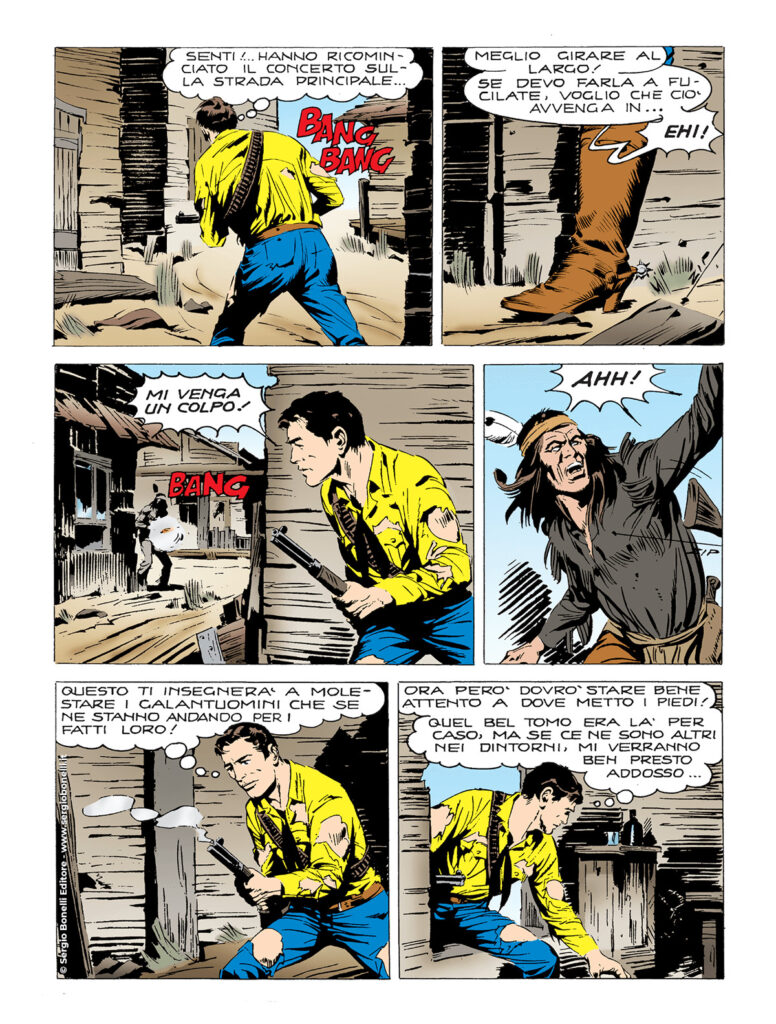 Continua lo shoppingTallonando un branco di Yaqui ribelli, Tex cade nelle grinfie dei criminali e ne subisce le torture: saranno proprio gli Yaqui a salvarlo, attaccando improvvisamente il villaggio fantasma dove si era rintanata la gang di evasi…