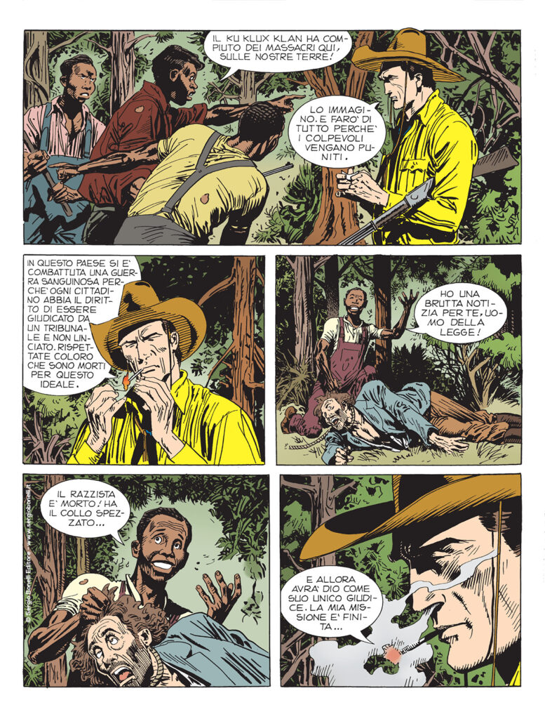 La “Vendetta del Sud” procede verso il Tennessee, ma i danni subiti la rallentano molto, così Tex riesce a salire a bordo, affondandola definitivamente…