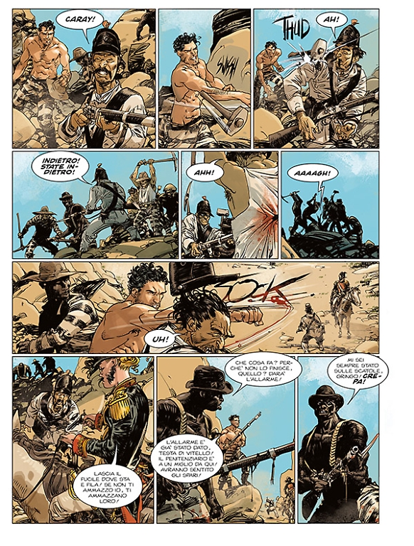Nel carcere messicano di Frontera langue un misterioso prigioniero, che la bella francese Blanche Denoel vuole libero a tutti i costi, perché la aiuti nella sua vendetta! Ed è solo la miccia che accende una colorata esplosione di avventura e violenza nelle assolate praterie del SudOvest, tra pugni, cavalcate, spari e Comanches! Incontrerete un giovane Tex come non lo avete mai visto prima, nelle sensazionali tavole a colori di Mario Alberti!