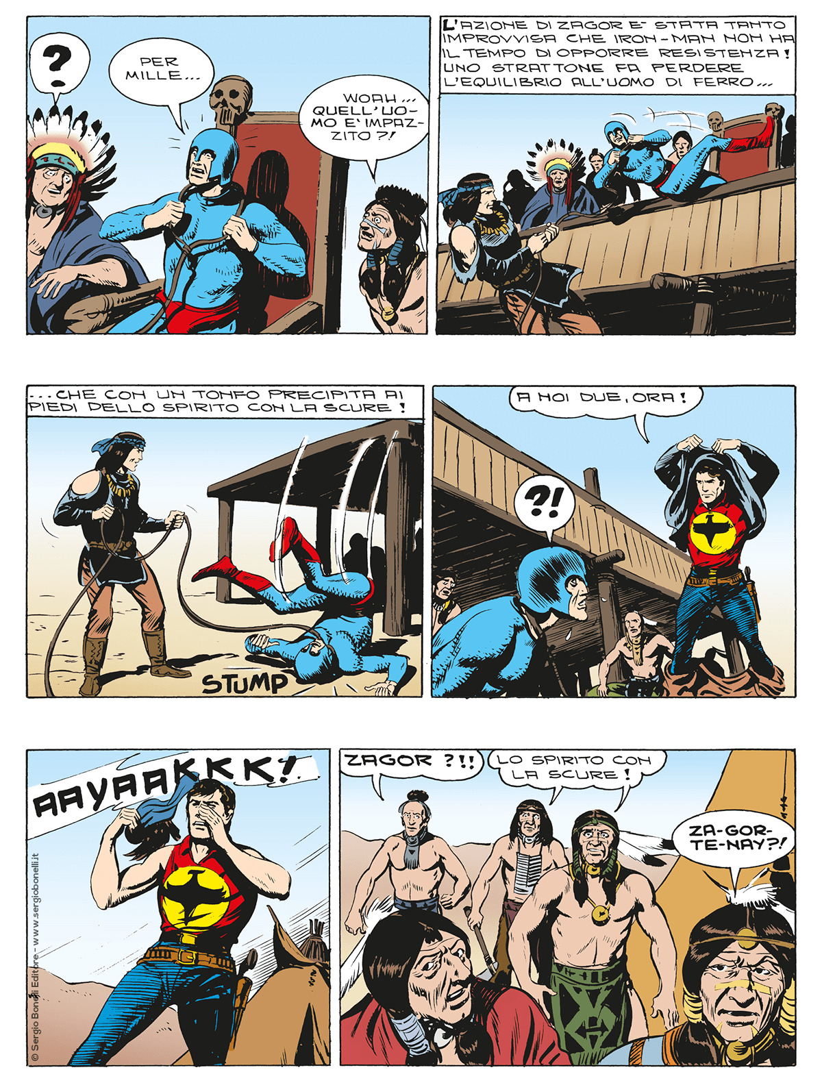 Zagor prende parte a un torneo messo in piedi dall'usurpatore Iron-Man, riuscendo ad affrontarlo nuovamente e, smascherati i suoi trucchi, a sconfiggerlo definitivamente... Nell'avventura che segue, lo Spirito con la Scure, deve affrontare Buddy Fox, detto “la volpe”, un noto criminale abile nei travestimenti che, rubata l'identità di un nobile locale, sta organizzando una festa per le persone più ricche della regione che intende alleggerire di tutti i loro valori...