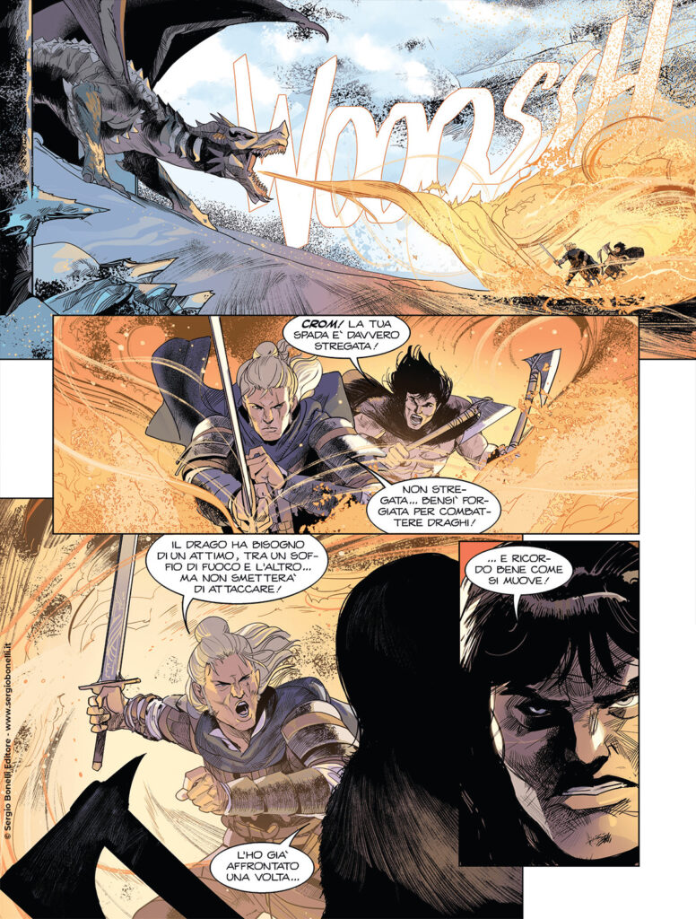 Armi in pugno, Ian e Conan fronteggiano il possente drago che ha trafugato le gemme dal tempio di Aquilonia…