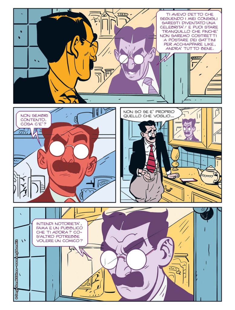Chi dei due prevarrà quando il Groucho umano deve vedersela con il Groucho virtuale, perfetta espressione dell’universo dei social?