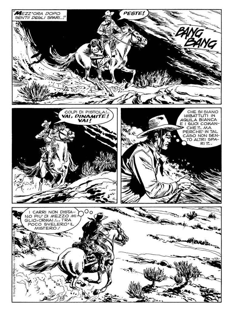 Continua lo shoppingLa strada che conduce a Fort Davis, e alla salvezza, è sotto il controllo di alcune bande Comanches. Per Tex e per l'insolita compagnia di coloni e galeotti che si trova sotto la sua protezione c'è un'unica soluzione: tornare indietro, tentando di evitare il contatto con Aquila Bianca e i suoi guerrieri. L'intero territorio sembra essere in mano Comanche, e la sola speranza per il gruppo in fuga è riuscire a raggiungere Fort Quitman, ai confini con il Messico…
