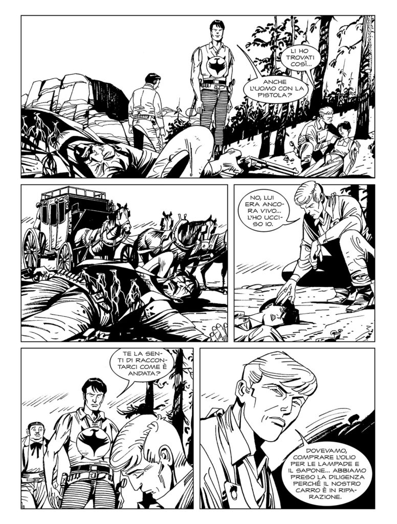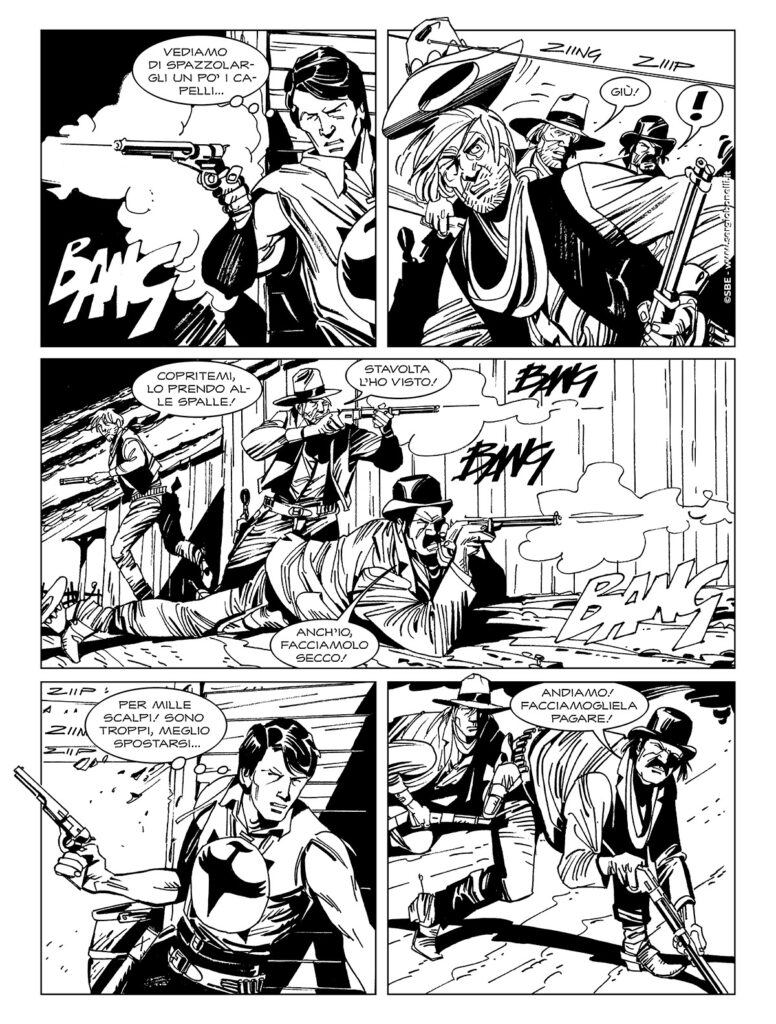Continua lo shoppingLa prima storia è un tipico western ambientato in una cittadina che vive nel terrore di una banda di criminali le cui scorrerie sono ricorrenti, un tema classico rivisitato in chiave zagoriana.