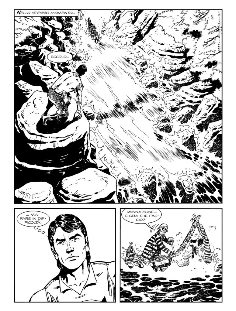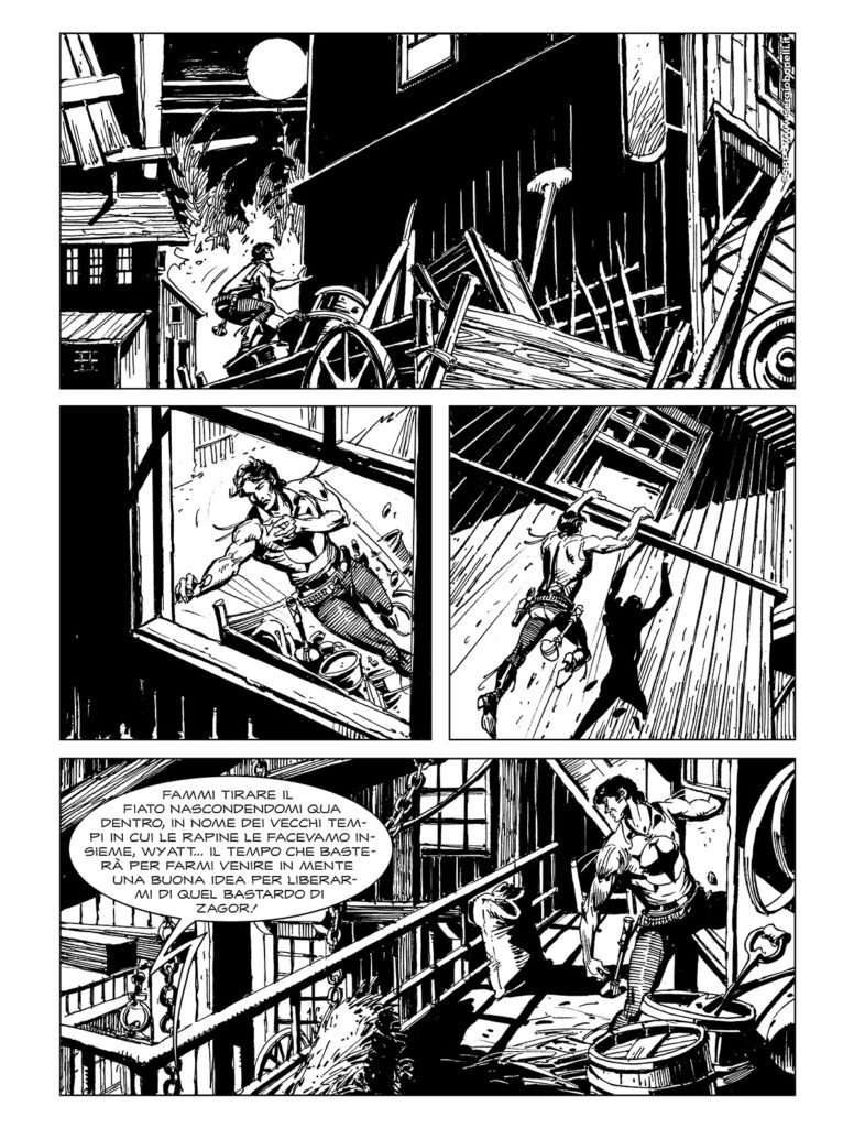 A testimoniare, se mai ce ne fosse il bisogno, di come le avventure dello Spirito con la Scure vengano "contaminate" dai generi più diversi, ecco il secondo racconto in cui l'inseguimento di un bandito assume tinte decisamente horror complice una notte di luna piena.