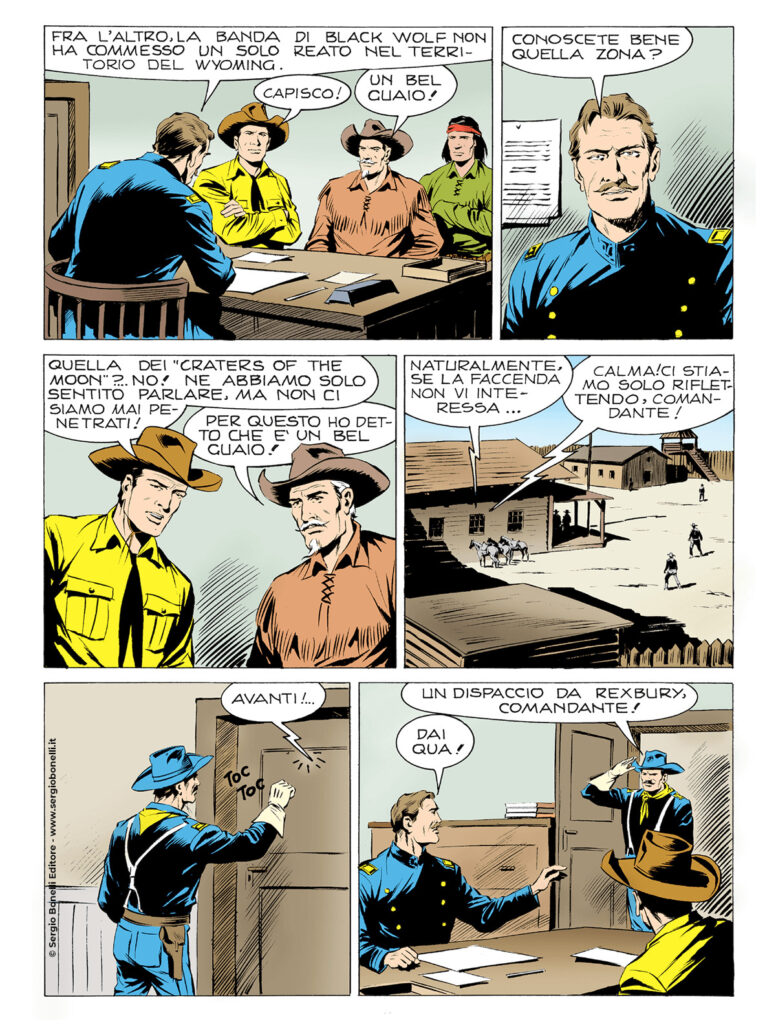 Continua lo shoppingTex e Carson vengono incaricati di mettere le briglie alla Banda dei Lupi capeggiata dal terribile John “Black Wolf” Fleming. Dopo l’ennesima rapina e la solita corsa verso i Craters of the Moon, i fuorilegge riescono a far perdere le loro tracce, ma Tex è pronto a farli cadere in trappola!