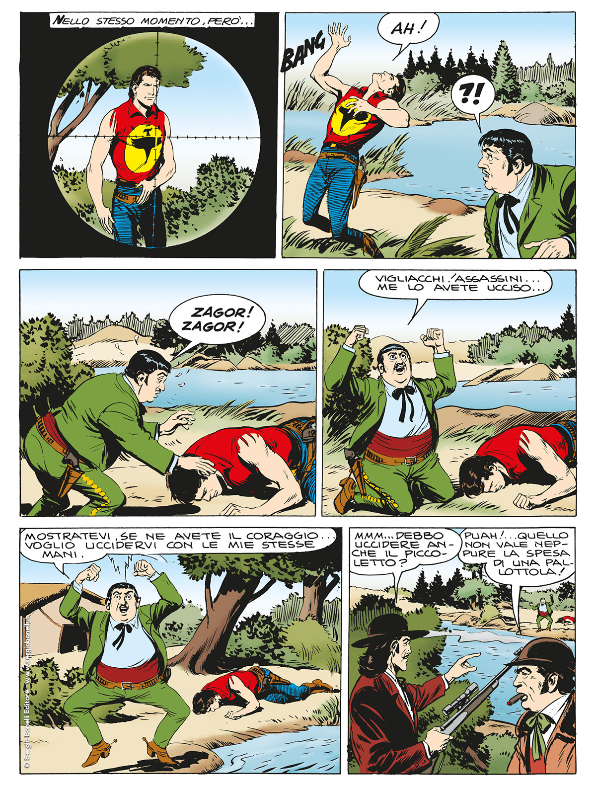 Zagor, Cico e il trapper Kirk sono in viaggio per fermare una guerra tra indiani e coloni. Durante il cammino, il messicano e Kirk sono rapiti dai misteriosi pigmei guidati da Madar, desideroso di vendicarsi dello Spirito con la Scure. Per liberare gli amici, Zagor dovrà sconfiggere misteriosi demoni... Nell'avventura che segue, Zagor si troverà ad affrontare un micidiale sicario che, armato di una carabina in grado di colpire con precisione da grande distanza, è stato ingaggiato col solo scopo di eliminare il protettore di Darkwood...