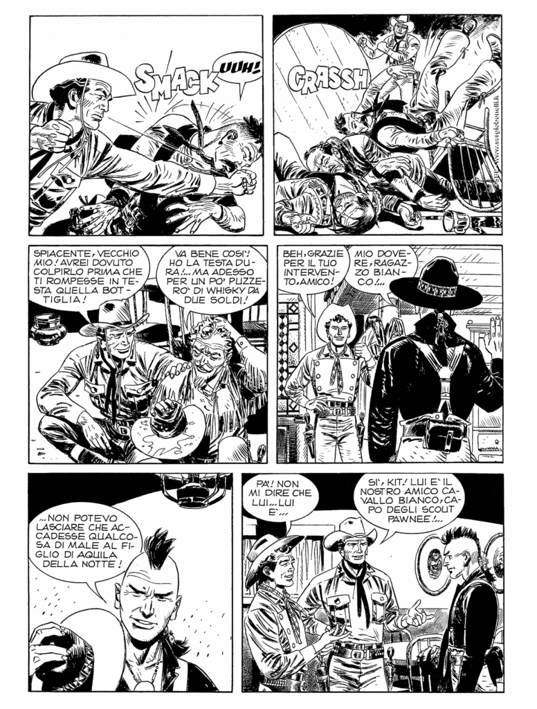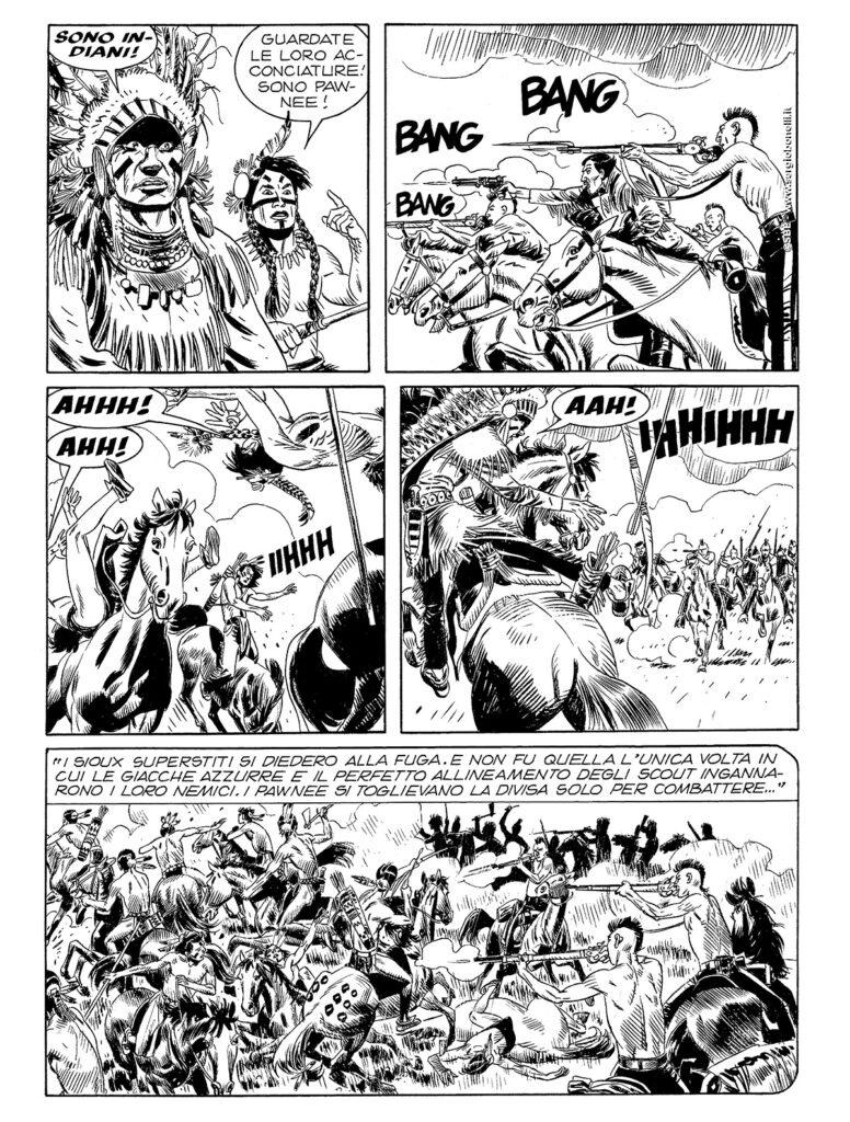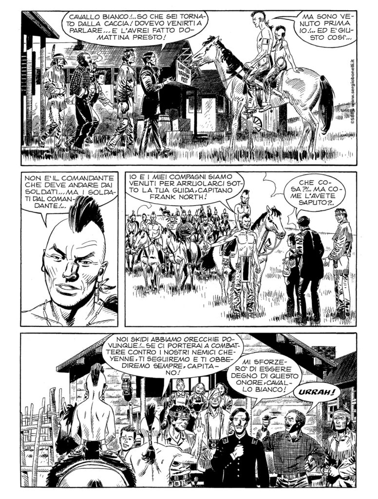 Sotto la guida di Frank North, gli Skidi Pawnee di Cavallo Bianco riescono ad aver ragione dei loro nemici, i Cheyenne di Colpo Coraggioso. Lo scontro tra i due valorosi guerrieri giunge a una amara conclusione. Amara, ma non definitiva… Intanto, gli equilibri nella regione, molti anni dopo quegli eventi, sono mutati: i coloni bianchi beneficiati dal coraggio e dalla lealtà dei Pawnee non hanno ripagato gli indiani con pari moneta, anzi non fanno mistero di considerarli un fastidioso intralcio sulla via del progresso. A North non resta che chiamare in soccorso Tex, Carson, Kit e Tiger, per riunire, insieme con Cavallo Bianco e suo fratello Volpe Ardita, un manipolo di valorosi che possano far fronte al rischio di un nuovo e più sanguinoso massacro...