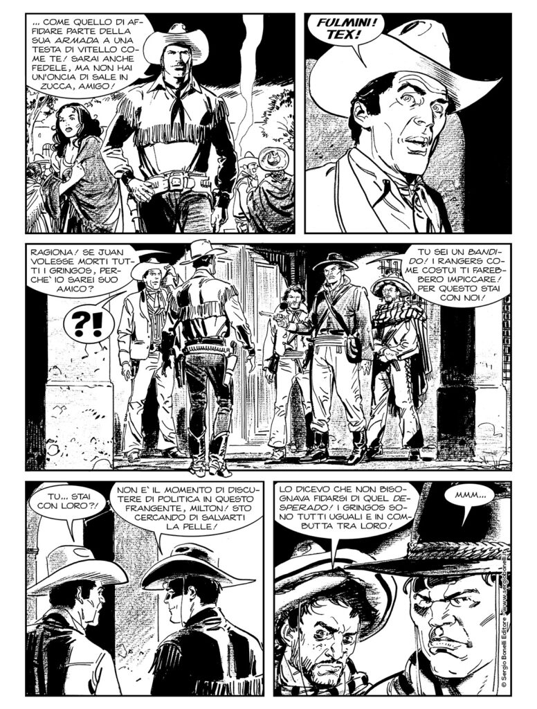 Continua lo shoppingPer i texani è un bandito, per i messicani un patriota! Juan Cortina ha scatenato una guerra sul confine tra Texas e Messico, per difendere la sua gente vessata dai conquistatori anglos. A Matamoros, dove si è stanziata la truppa delle Aquila di Cortina, si presentano due gringos: Milton Faver, con un messaggio del governatore Houston, e Tex Willer, accorso su richiesta del suo vecchio amico. Juan Cortina gli chiederà di combattere con lui? Tex dovrà tradire il Texas? E quello che sperano Pedro e Miguel, ansiosi di battersi di nuovo al fianco di Tex Willer!