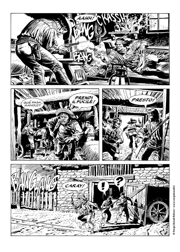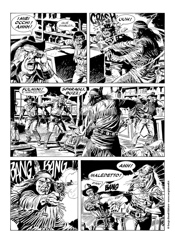 Continua lo shoppingSulle tracce di una banda di trafficanti di armi che hanno venduto winchesters nuovi di zecca ai Piutes di Corvo Rosso, Tex e i suoi pards scoprono che la carovana guidata dal loro amico Starbuck, in viaggio verso le Montagne Rocciose sulla Oregon Trail, rischia il massacro. Inoltre, tra gli stessi coloni, si nascondono gli autori di un’audace rapina. Un’ epica saga western di sconfinati panorami e sensazionali attacchi indiani, illustrata dalle evocative tavole di Andrea Venturi!