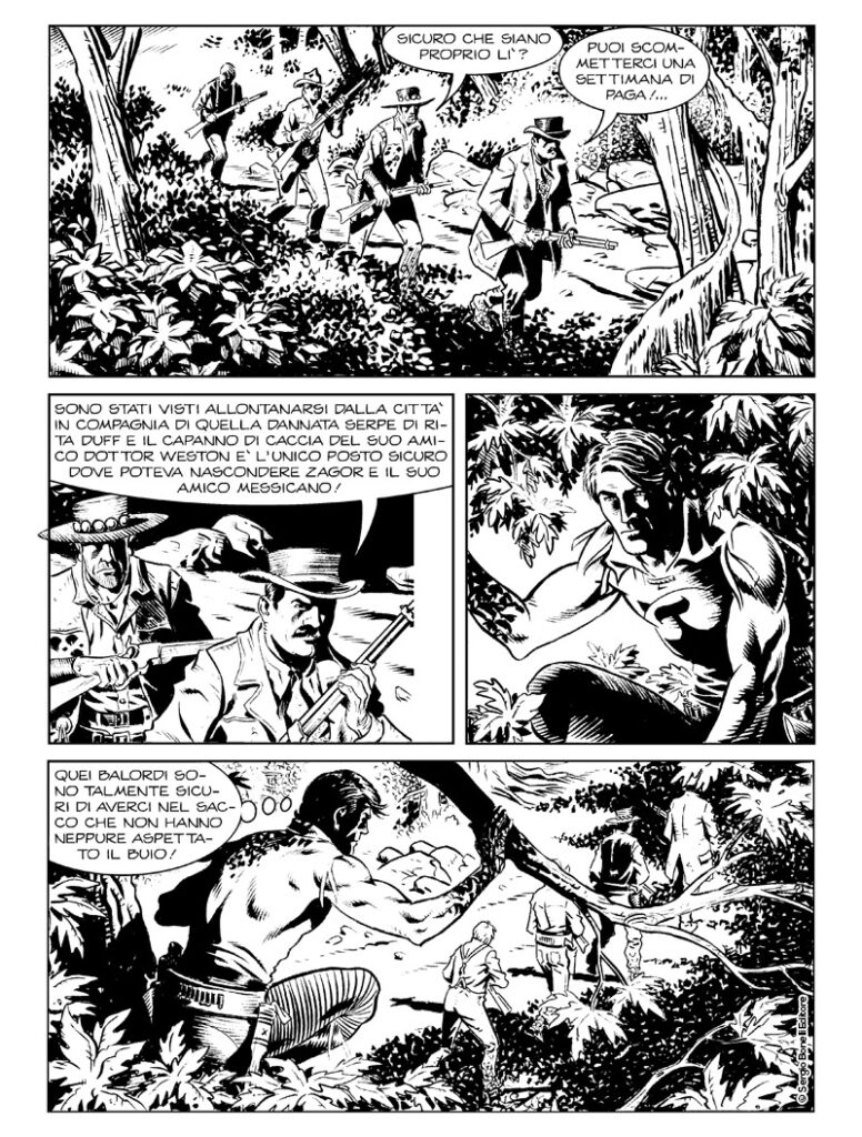 Con loro si schierano anche Rita Duff, una giovane donna conosciuta dallo Spirito con la Scure in una avventura del passato (“La palude dei forzati”), e suo fratello Elias, che ha il dono di parlare agli animali. A dar loro man forte si aggiunge anche Parrish, un pistolero un tempo al soldo di Langley, che ha cambiato vita rinunciando alla violenza dopo essersi reso conto del male commesso finendo, però, alcolizzato. Quando Rita viene rapita e tenuta in ostaggio in un fortino dei vigilantes, arriva anche per Parrish il giorno del riscatto.