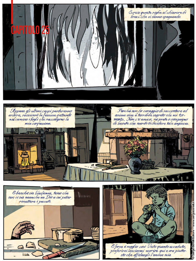 A tarda notte, quando lo credono addormentato, il padre e la zia parlano della montagna. Sono spaventati e lui sa che deve proteggerli, ma il nuovo amico che ha incontrato nei boschi lo ha avvisato: meglio non dire niente ai grandi, loro non possono capire.