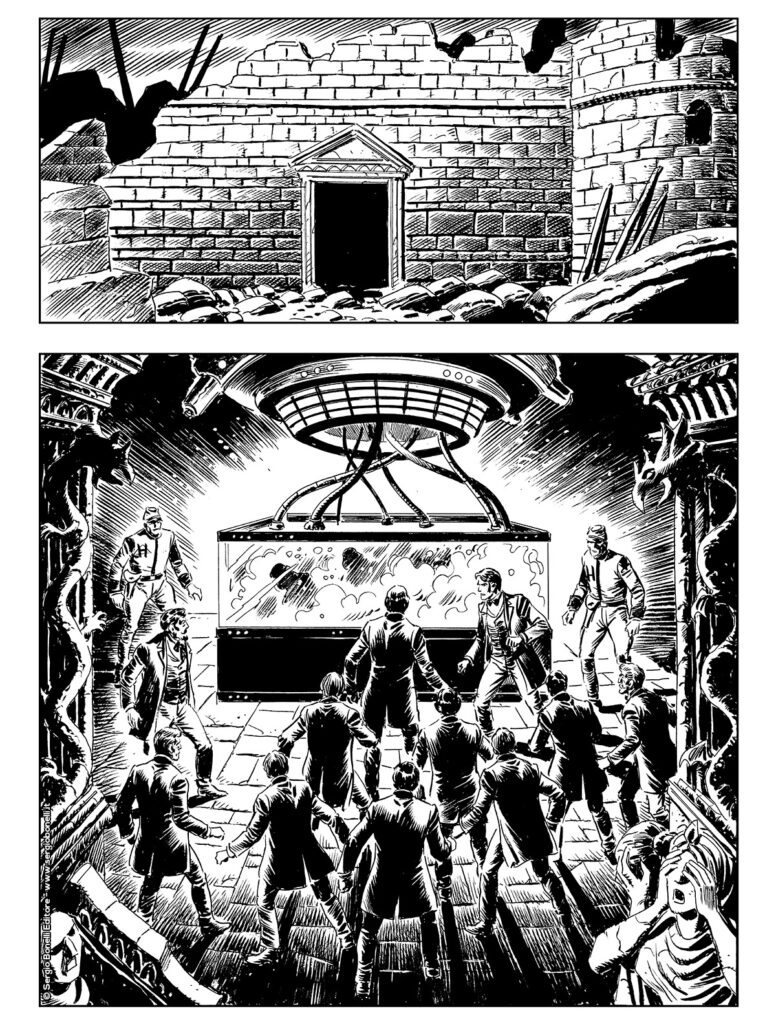 Continua lo shoppingLa congrega di scienziati che si fa chiamare “I discepoli di Hellingen”, riunita dal Primo Discepolo Jupiter Quaritch ha posto la sua base nei sotterranei sotto i ruderi del castello sul monte Naatani, che già era stato il covo del Mad Doctor, e ha usato la Vasca della Resurrezione degli Akkroniani per cercare di dar vita a un nuovo clone del loro Maestro. Ma, inaspettatamente, nell’apparecchio si materializzano non una, ma due figure… Zagor, che è penetrato nel sotterraneo e assiste attonito alla scena, si trova a dover affrontare una situazione imprevedibile che darà il via una serie di clamorosi colpi di scena culminanti con la morte di un importante personaggio della saga, prima di un sorprendente finale.