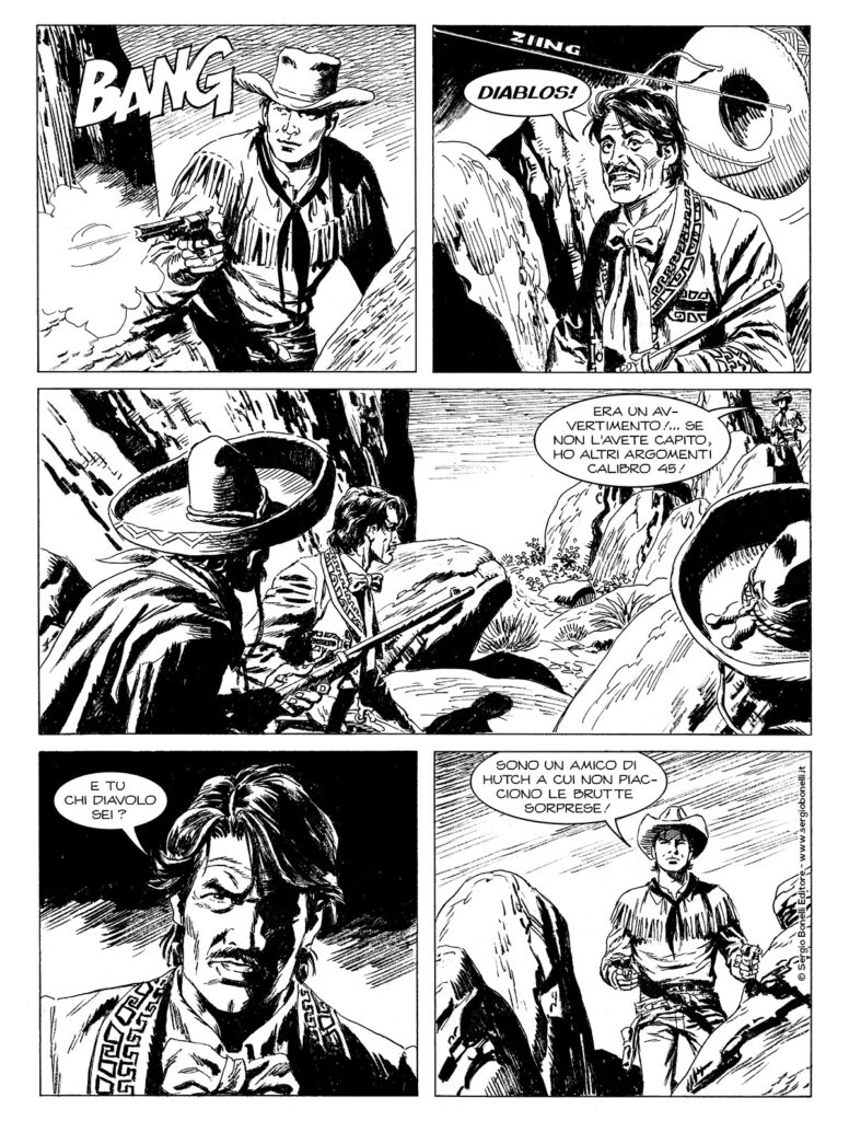 Continua lo shoppingUn giovane gringo viene torturato da una banda di messicani... È Hutch l’amico d’infanzia di Tex! Si è messo nei guai per amore della giovane Alma, ma il padre della ragazza, Don Rodolfo Arenas, è un potente e malvagio ranchero che vuole impartire a Hutch una solenne e definitiva lezione. Per fortuna del biondo scavezzacollo, in Messico c’è anche Tex Willer...