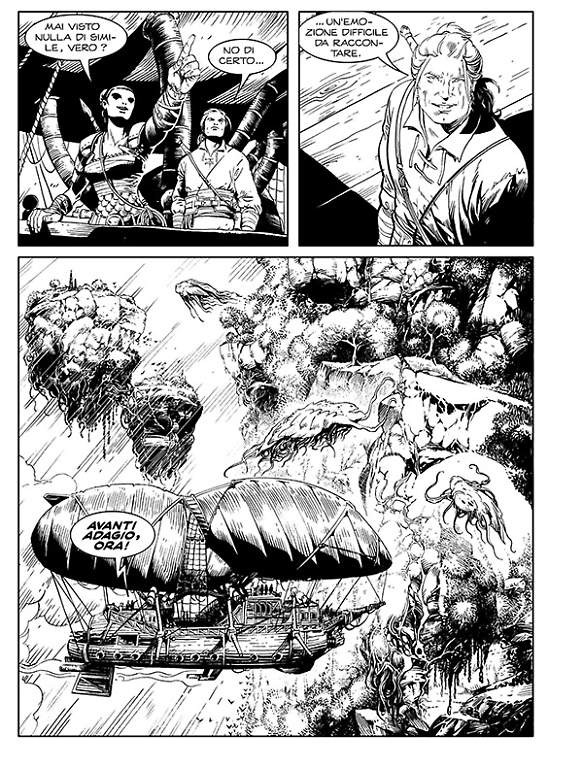 Continua lo shoppingRaggiunto il misterioso mare dei Kraken, a bordo della possente nave volante di Queman, Dragonero e gli uomini dell'equipaggio si trovano ad ammirare un incredibile spettacolo naturale: le gigantesce isole volanti di Ariosilca, attorno alle quali volteggiano centinaia di Kraken. I leggendari mostri si accalcano attorno alla vascello e lo sospingono verso il più enorme tra loro, in attesa tra le nuvole per lo scontro finale!