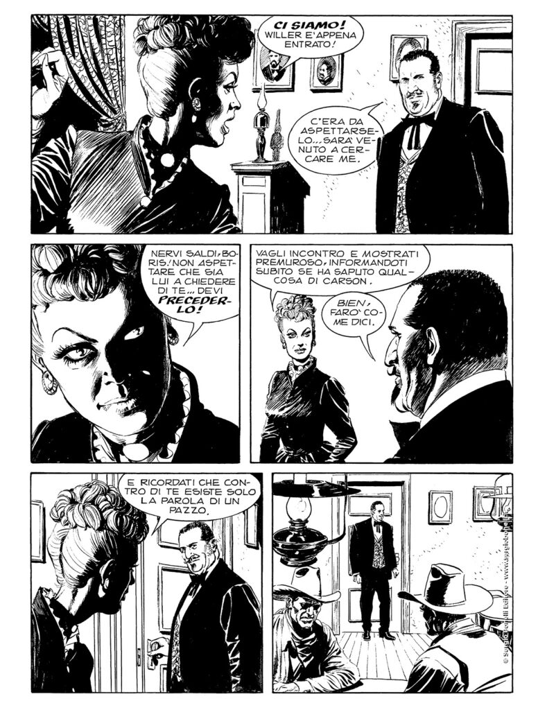 Continua lo shoppingLa rete di inganni e malefici che il diabolico Mefisto ha intessuto con il nero filo dell'odio si stringe inesorabile attorno ai nostri pards. Carson è già nelle mani del negromante e di sua sorella Lily. Gli uomini di Walcott, agli ordini del conte Leonov, sono sulle tracce di Kit e Tiger Jack. Cosa ne sarebbe di loro se riuscissero a catturarli? Intanto, Tex mette alle strette lo strano aristocratico e, poco dopo, ha il primo, drammatico confronto con Mefisto!