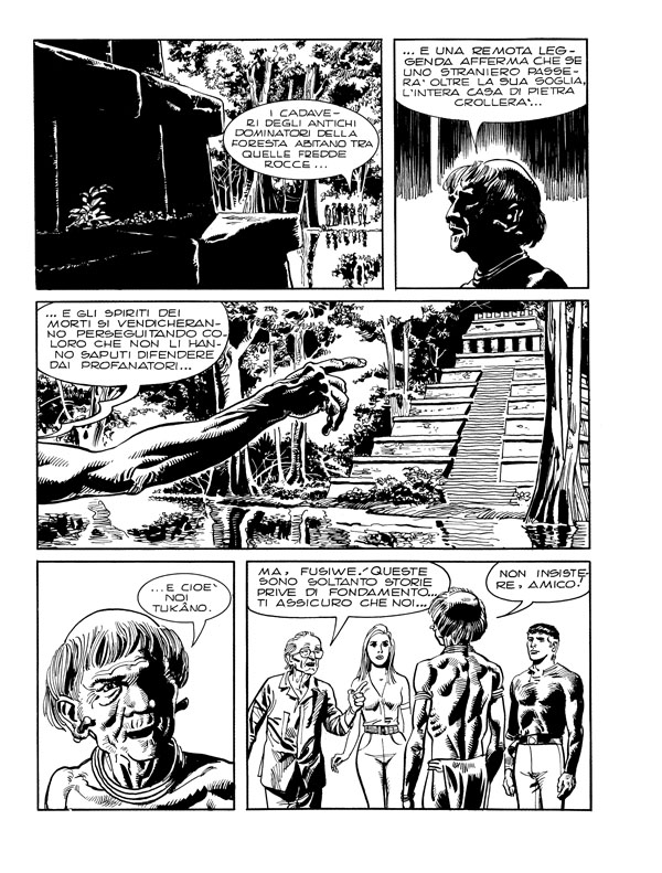 Continua lo shoppingGli indios Tukano, guidati dal saggio Fusiwe, non vogliono che i nostri entrino nella piramide maya: è un luogo sacro, per loro. E non hanno tutti i torti: il tempietto è pieno di trappole mortali che colpiranno i misteriosi sabotatori della spedizione. Ma il pericolo più insidioso per Mister No è la bella Patricia, che, innamorata cotta di lui, sta diventando un po' troppo possessiva...