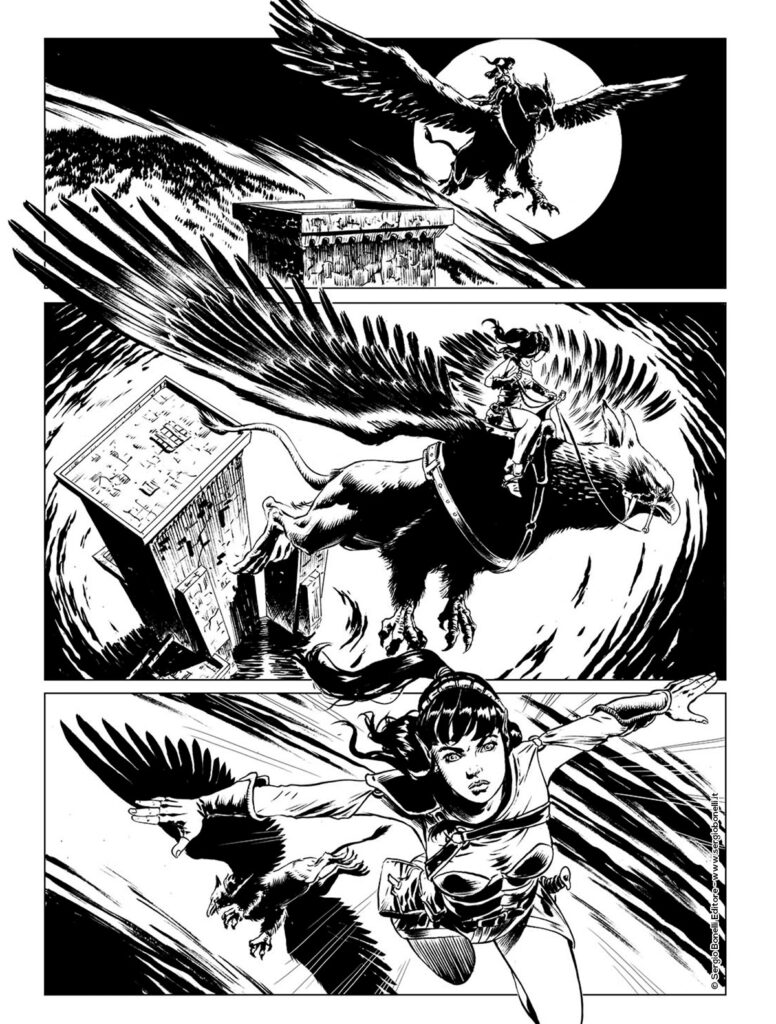 La lunga missione di Dragonero e Gmor nei Regni Meridionali giunge finalmente a conclusione! Accompagnati dall’enigmatico stregone liberato nell’albo precedente, un uomo che ha di certo molti segreti da nascondere, il biondo scout e il suo amico orco si inoltrano nel cuore della giungla alla ricerca di un misterioso tempio del quale da tempo si sono perdute le tracce. Cosa vi si cela all’interno di così importante da rischiare la vita contro i feroci guardiani che lo presidiano, neri demoni della foresta con i quali è impossibile scendere a patti? E cosa sta cercando la piccola elfa Sera nelle profondità verdastre e melmose di un putrido lago?