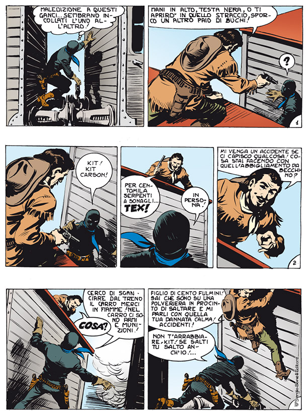 Continua lo shoppingCelato il viso sotto una maschera nera, Tex inizia a una serie di sabotaggi, mettendo il bastone tra le ruote dei biechi affaristi Brennan e Teller, cercando di farli uscire allo scoperto e portare alla luce del sole il loro losco traffico d'armi. A Durango, nel frattempo, Bessie Milligan e il sedicente sceriffo Stone ordiscono un piano per liberarsi del Ranger...