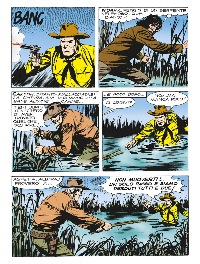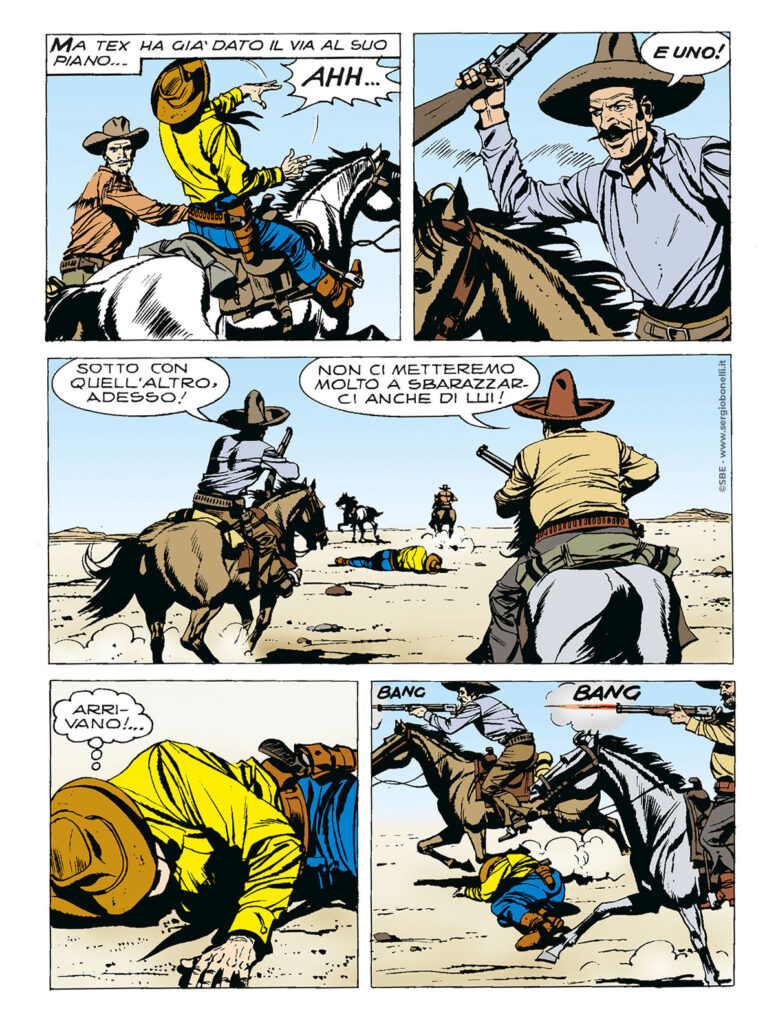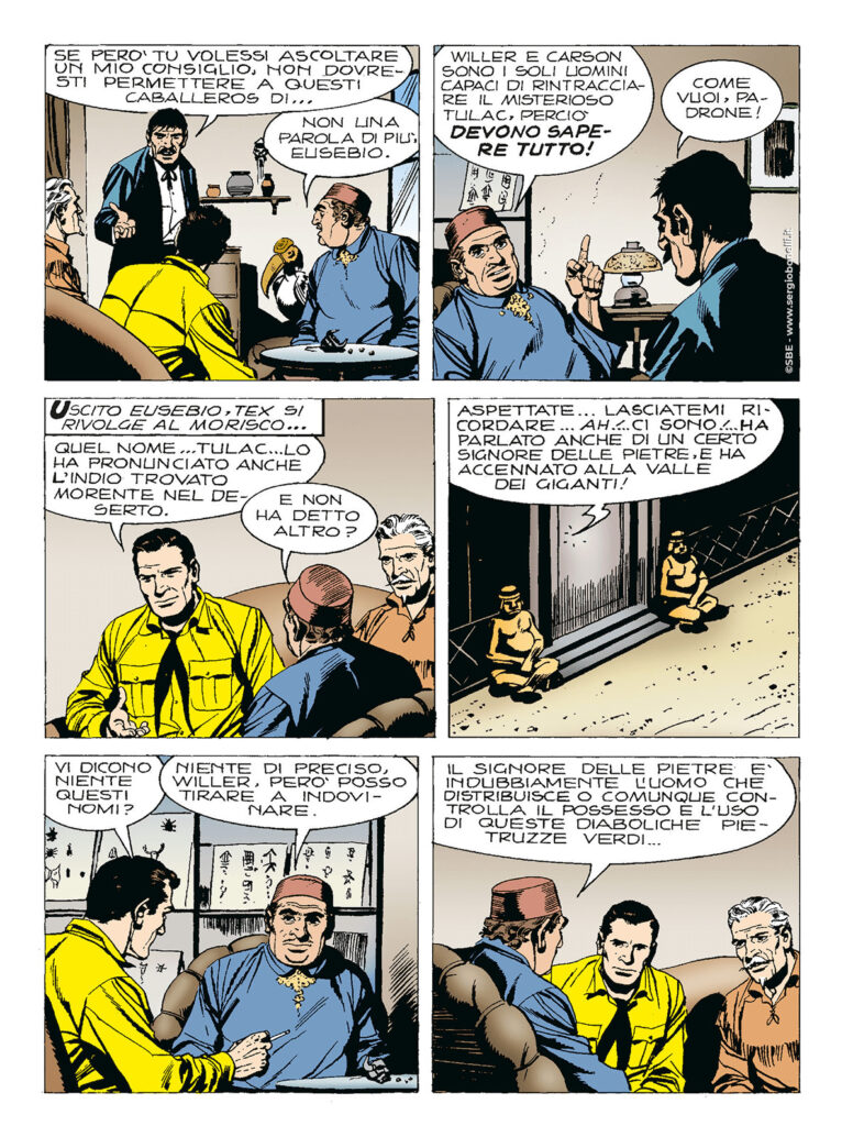 Continua lo shoppingTex e Carson dopo aver rischiato innumerevoli volte la pelle inseguendo il mistero custodito dal sordido indio Pablito, riescono a recuperare un inquietante amuleto e a sottoporlo alla perizia del Morisco…