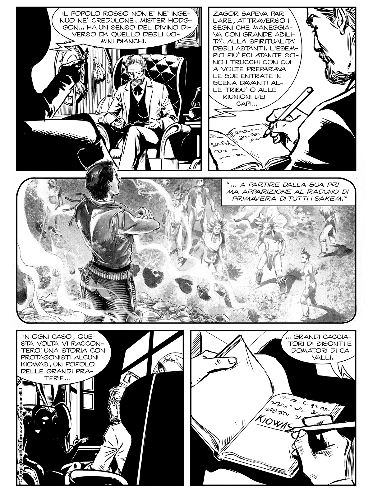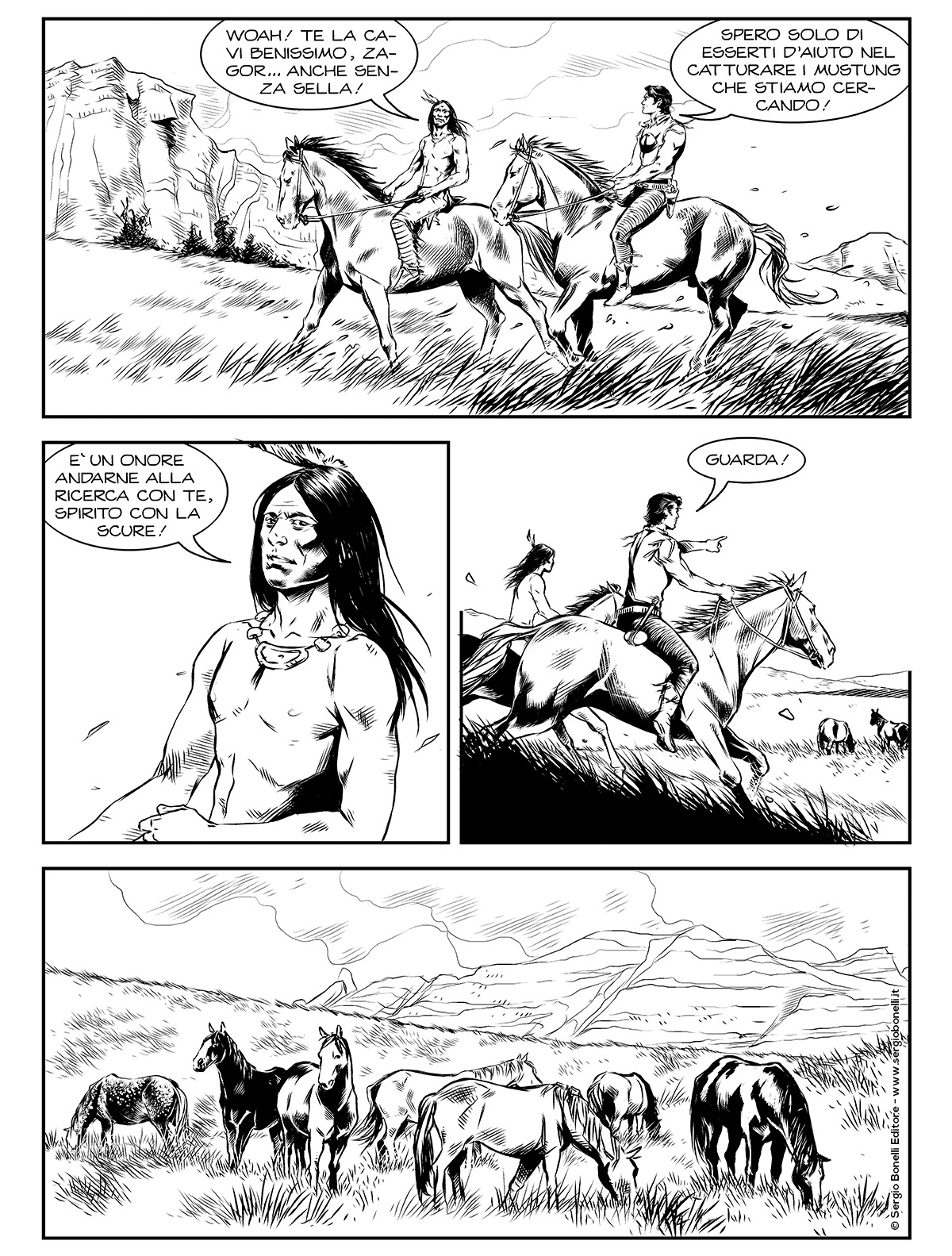 Il misterioso personaggio che a Philadelphia, nella seconda metà dell’Ottocento, racconta al giornalista Roger Hodgson aspetti poco conosciuti della vita di Zagor, eroe di cui da anni si sono perse le tracce, narra la storia d’amicizia fra lo Spirito con la Scure e un guerriero Kiowa, con cui va in cerca di cavalli bradi nelle praterie nordamericane. Una storia tragica e violenta, in cui ha un ruolo fondamentale la natura incontaminata delle grandi distese, su cui si muovono però anche uomini senza scrupoli per i quali la vita umana, soprattutto quella dei pellerossa, non ha alcun valore.