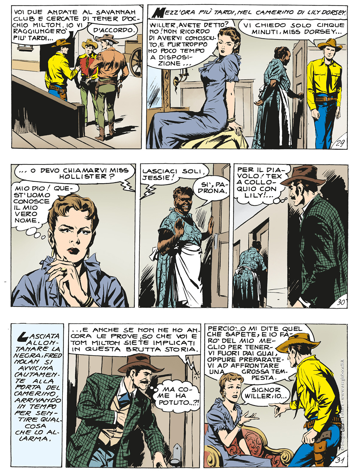 Inviato in segreto a New Orleans da Mac Parland, il sovraintendente dell'agenzia Pinkerton, ad investigare su di una catena di brutali omicidi legati ai sabotaggi della “Blue Star”, una compagnia di navigazione che opera lungo il Mississippi, Tex sfugge a diversi tentativi di ucciderlo e salva i suoi pards prigionieri a bordo di un battello condannato ad affondare. Individuato nel signor Milton, proprietario del “Savannah Club”, il mandante dei crimini, e più che deciso a fargliela pagare, Aquila della Notte cerca di convincere la bella e maliarda miss Dorsey, complice di Milton, a collaborare con la giustizia, in cambio della promessa di lasciarla fuggire. Il piano fallisce e Tex ne esce vivo per un soffio mentre las donna è prima ferita e poi rapita…